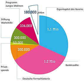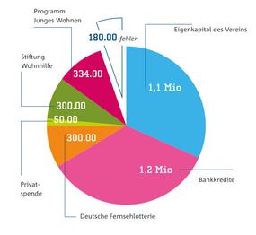 - Die restlichen Mittel in Höhe von ca. 1,1 Mio Euro werden durch Förderzuschüsse, Stiftungsmittel, weitere Projektpartnerschaften und Spenden aufgebracht.