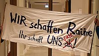 "Wir schaffen Räume, ihr schafft uns (nicht) ab!" "Junge Menschen haben das Recht auf Zufluchtsorte und Anlaufstellen!" "Wer jetzt bei der Jugend einspart, zahlt in Zukunft drauf!"